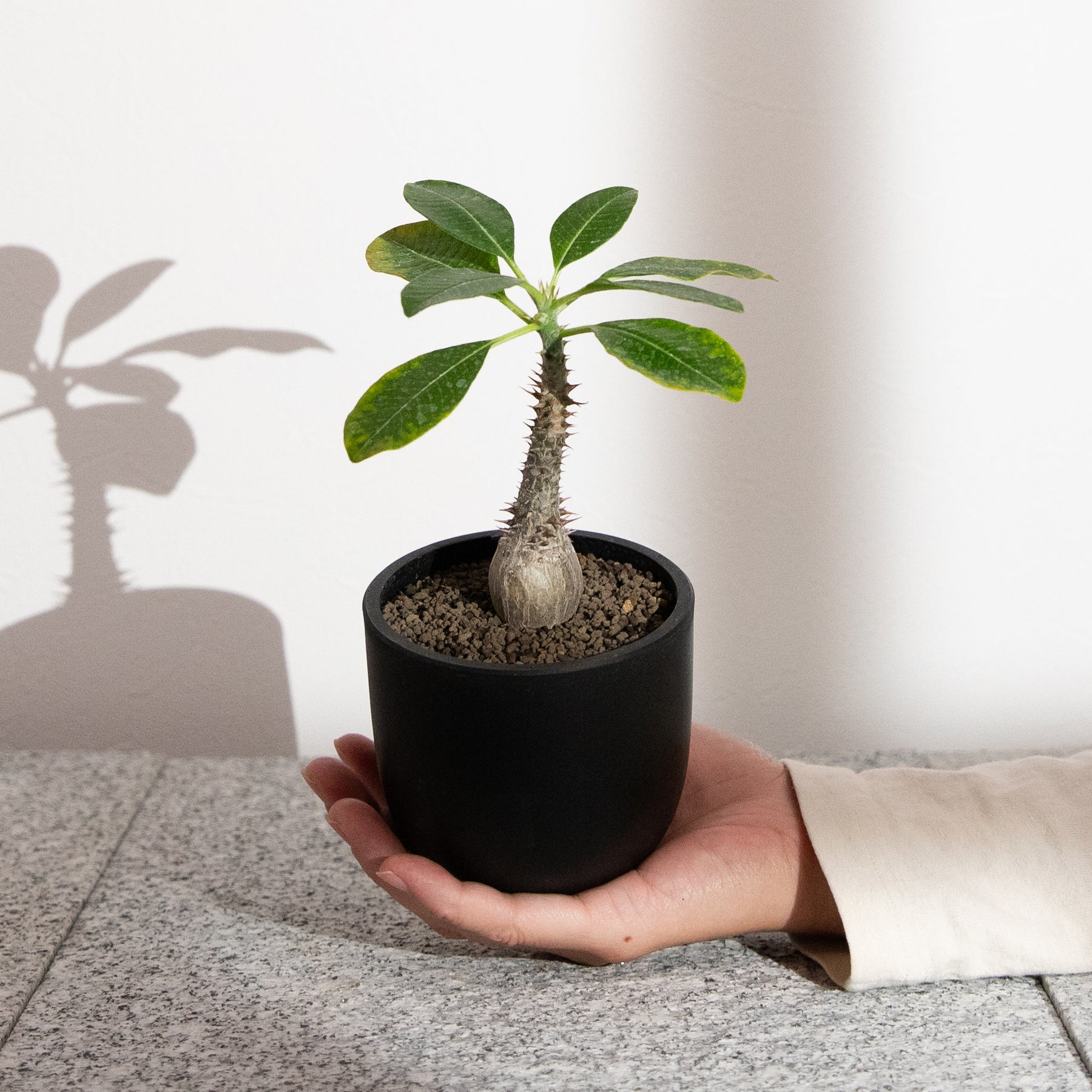 「パキポディウム・ウィンゾリー」は、マダガスカルの大地が育んだ希少な塊根植物で、美しいコントラストと静謐な佇まいが魅力の逸品です。