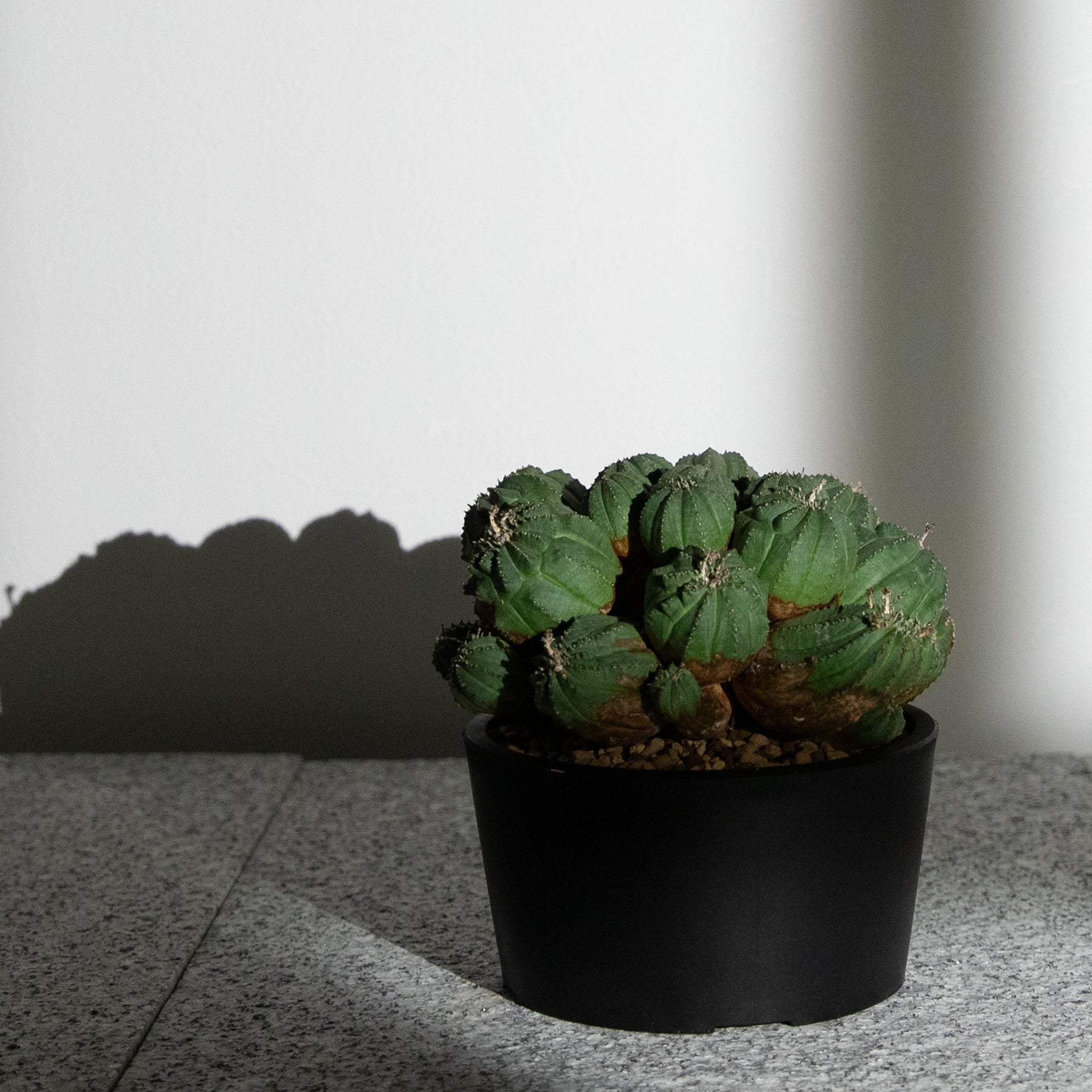 ころんと丸い球状の形に、放射状に走る縞模様。ボテンのようでササを持たず、静かな個性を放つ稀少な多肉植物です。その独特の姿は、空間に穏やかなリズムと遊び心を添えてくれます。