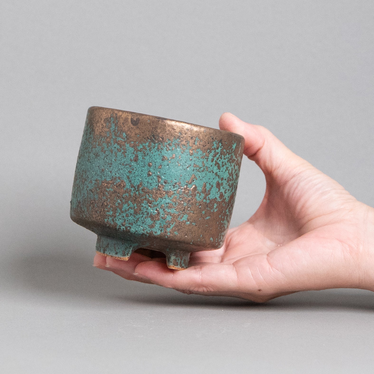 古い青銅器のような鮮やかな緑の錆色と、金属が輝いていた頃の面影を