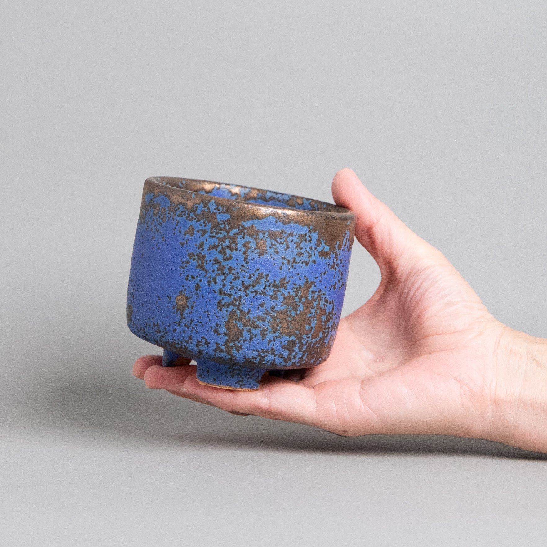 京都の陶芸作家古い青銅器のような鮮やかな緑の錆色と、金属が輝いていた頃の面影を残したような陶器を作っている。人間がまだ知らない世界の地図が浮かび上がってきたような、不思議な斑模様の陶器、このマダラは釉掛け焼成時の偶然性により焼き上がるその器にだけ現れた唯一無二の景色です。