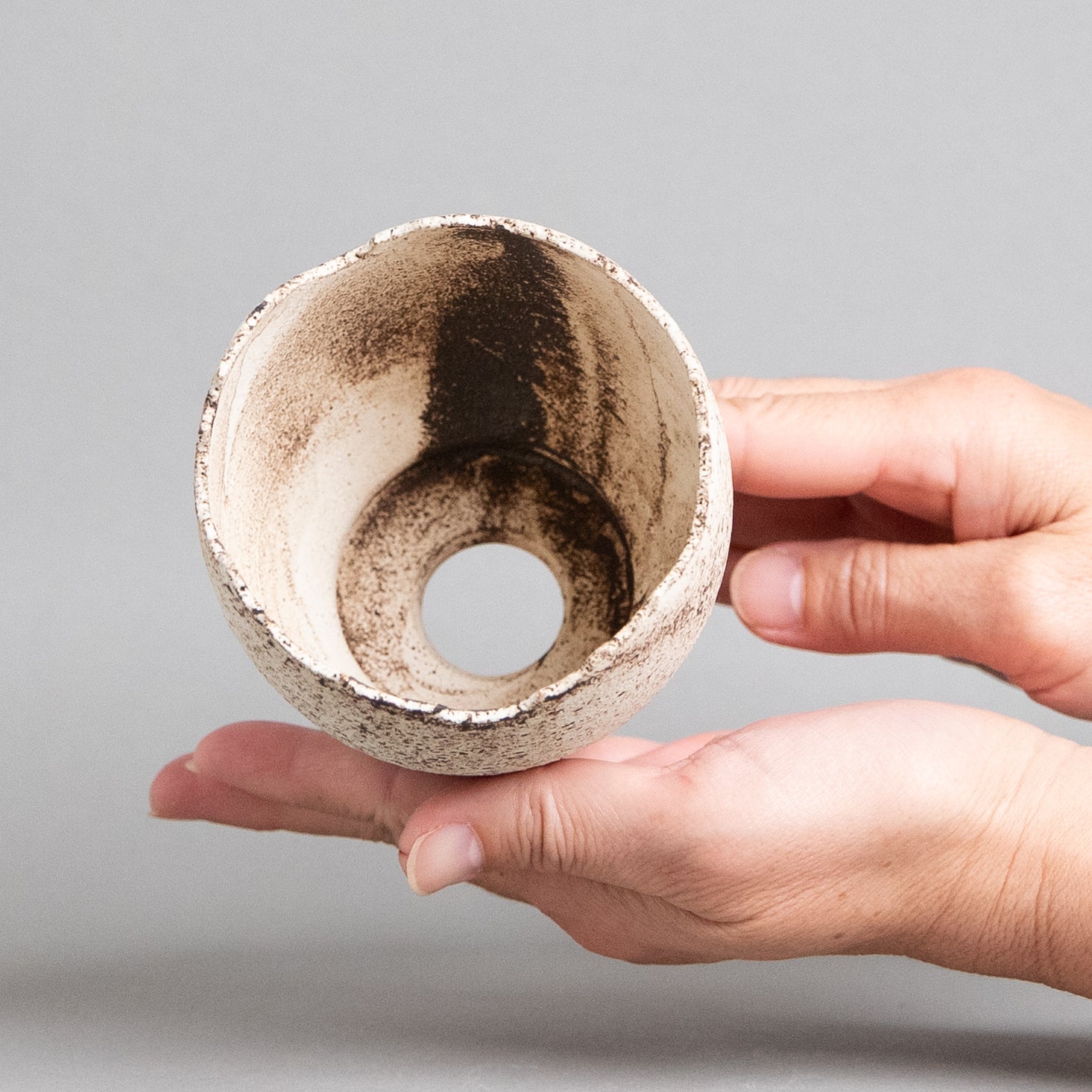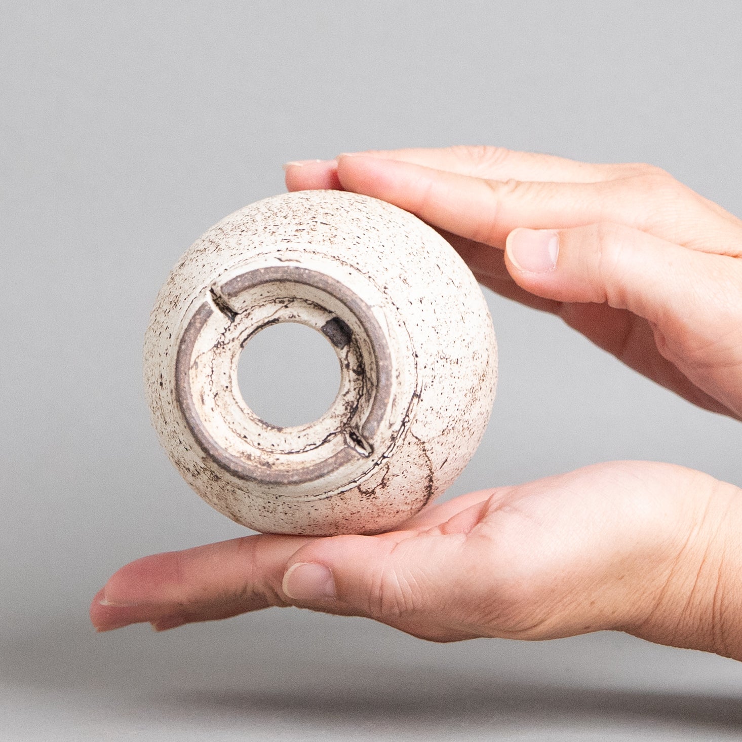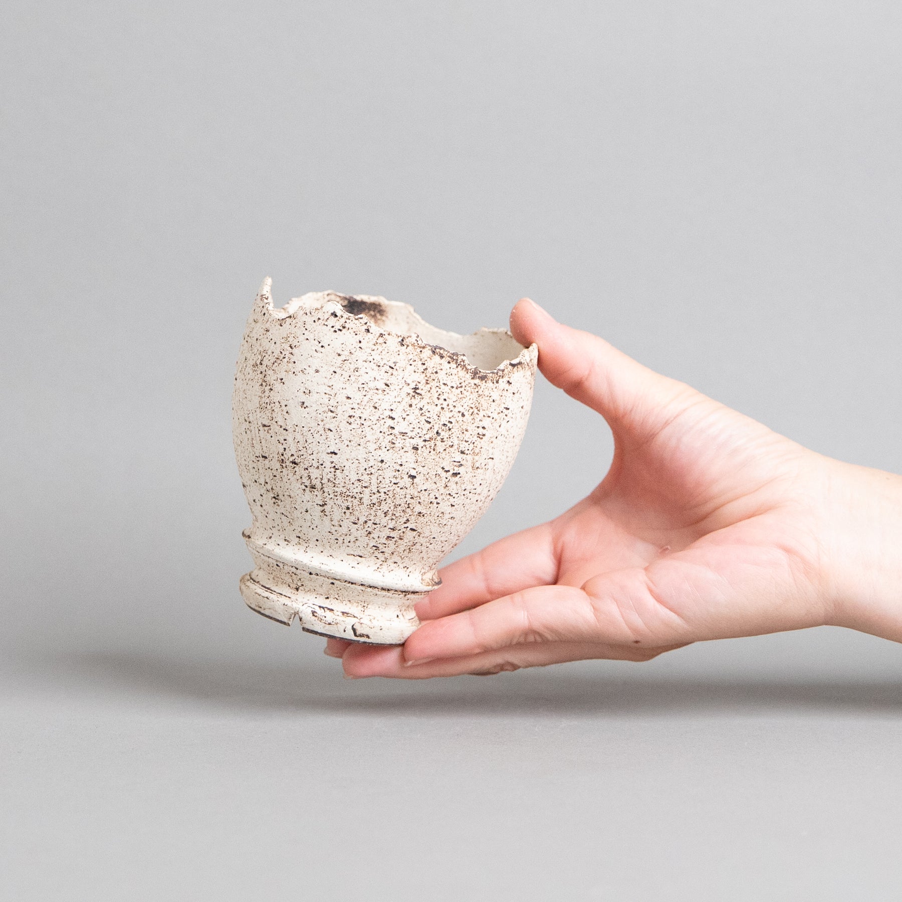 作家鉢 錆白泥3号卵殻鉢(chalaza)|(POT-0168-ES)